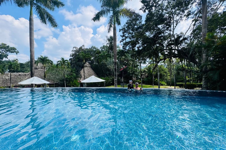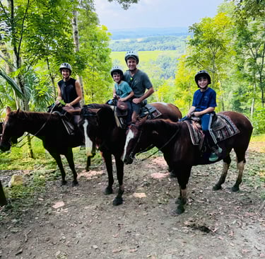 During our stay, we explored the property on horseback, went bird watching, paddled along the river by canoe, relaxed by the pool, and spotted local wildlife including capybaras, iguanas, and howler monkeys. We also went zip lining and visited Xunantunich, an ancient Mayan archaeological site that offered incredible views and a deeper connection to the region’s history. The on-site restaurant was exceptional, and the bar served delicious locally infused rums that quickly became a favorite.