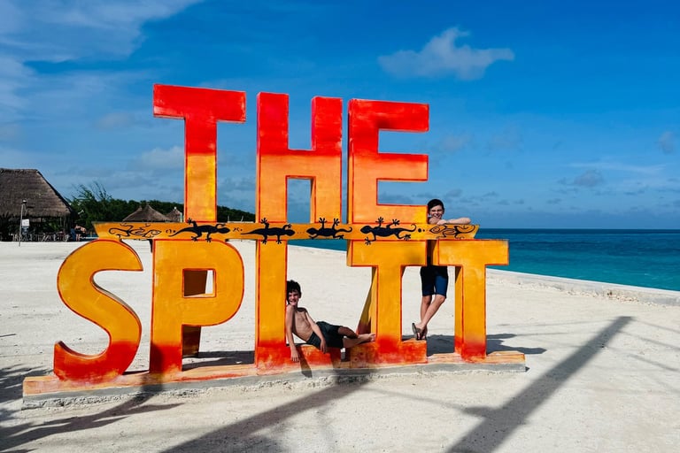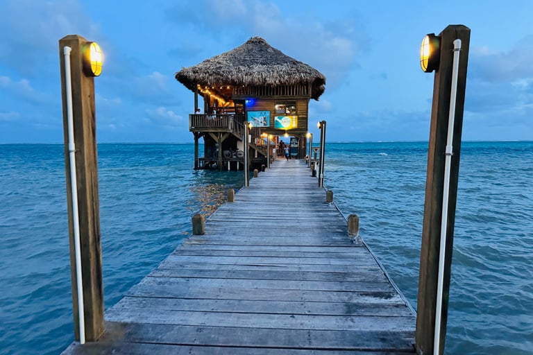 During our time on Ambergris Caye, we were eager to experience both the ocean and the laid-back rhythm of island life. On our first day, we rented a golf cart and set out to explore Secret Beach. Getting there is part of the adventure—the road is बेहद bumpy and definitely not for the faint of heart. It’s best to go on a calm day, as the water is at its most beautiful—clear, shallow, and perfect for families and partiers.
